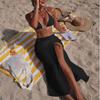 2026 Solid Color New Beach Sunscreen Mesh Skirt Fashionable and Sexy Three-piece Bikini Split Swimsuit