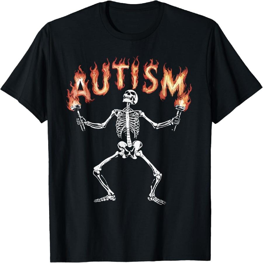 Autism Skeleton Meme Funny Fire Skeleton Flaming Torches T-Shirt