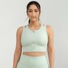 Discover ultimate comfort and style with this light green front zip sports bra, designed specifically for active women. Crafted from a durable nylon material, it features a shockproof design that ensures excellent support during high-intensity workouts. The fixed padding provides a smooth silhouette and additional support, while the brocade double-sided fabric offers a luxurious feel against the skin. Perfect for any sport or active lifestyle, this bra combines functionality with a modern, stylish look.