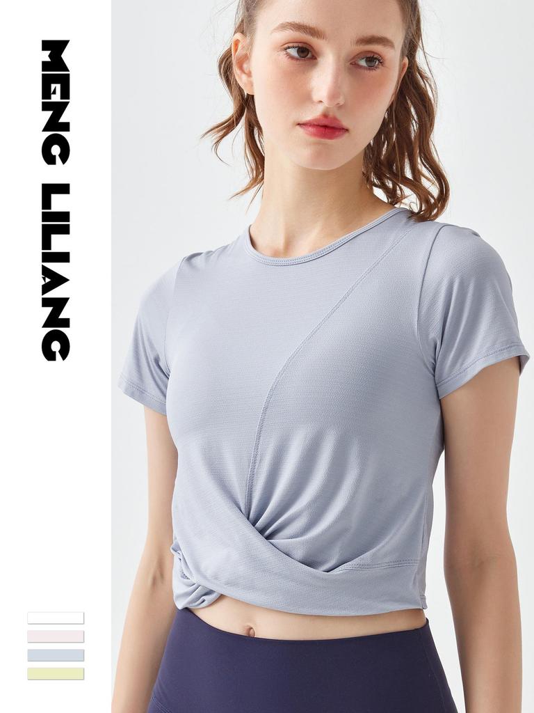 Cross-Wrap Bare-Feel Quick-Dry Short-Sleeve Yoga Crop Top