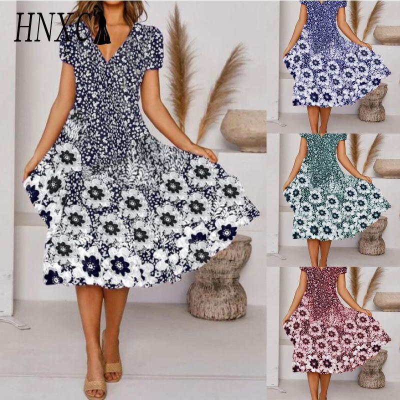 HNXC Kadın Modası Yaz İlkbahar Kısa Kollu V Yaka Günlük Elbiseler