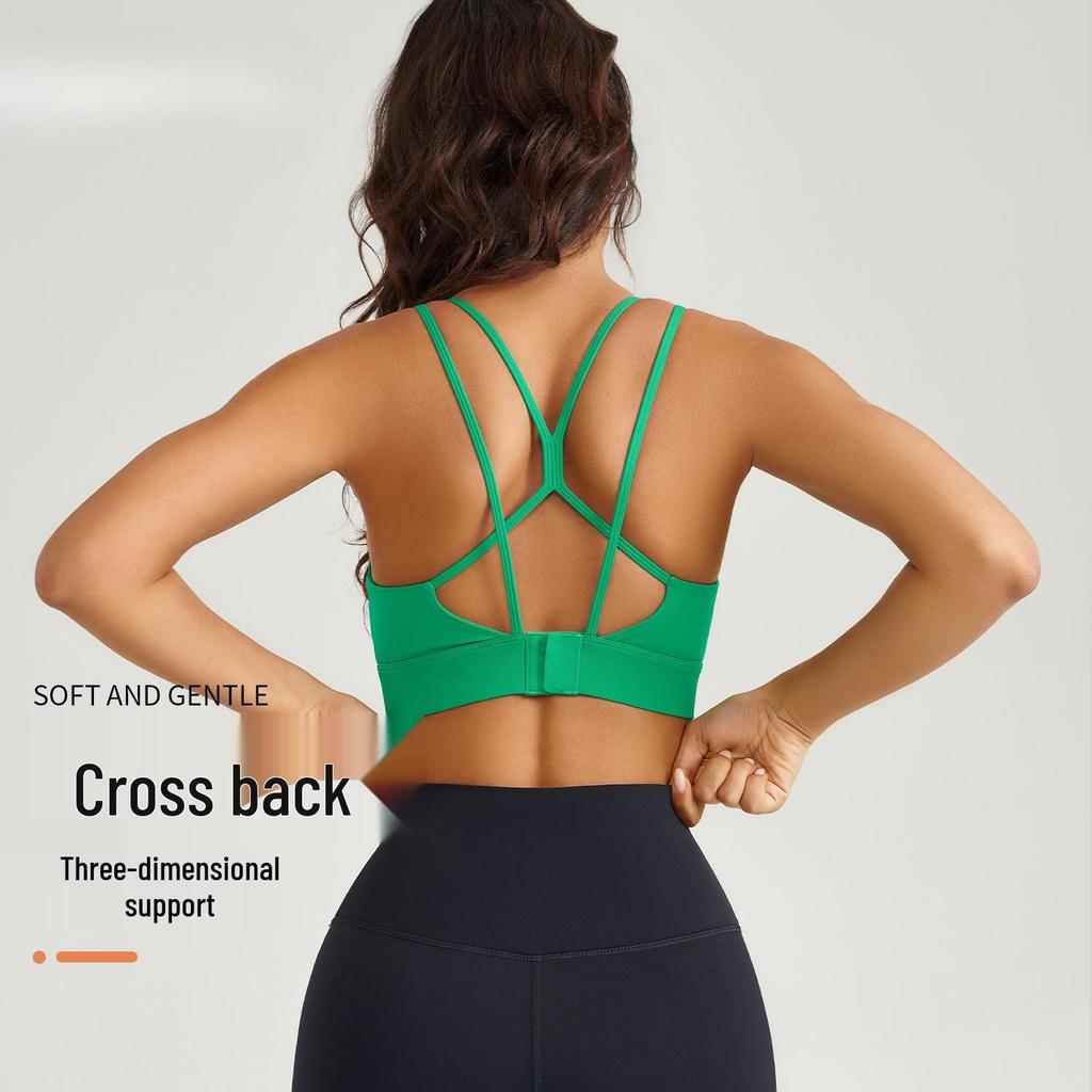 This women's sports bra combines style and functionality, perfect for yoga and fitness activities. Designed with a cross-back and thin straps, it offers a full range of motion while ensuring optimal support. The shock-absorbing feature enhances comfort during high-impact exercises, while the one-piece cup design provides a seamless look under clothing. Made from durable nylon material, it promises both longevity and a snug fit, complemented by a luxurious brocade double-sided finish. Ideal for those seeking fashionable and practical sport underwear.