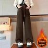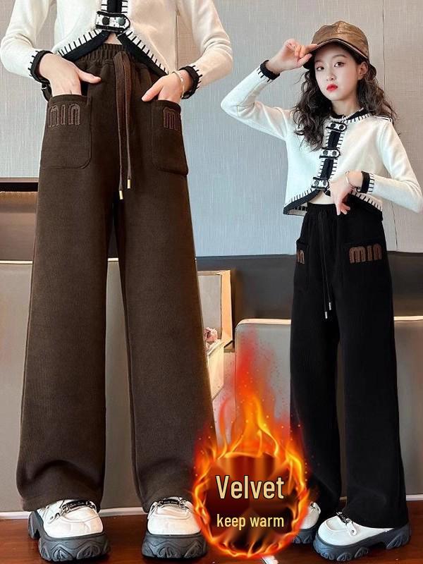 Girls' Fleece-Lined Wide-Leg Pants: 2025 Autumn/Winter Casual Straight-Leg for Kids