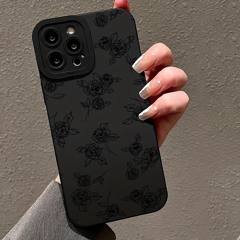 1 Black Rose Print Phone Case, Suitable for iPhone 17, 16, 15, Plus, Pro, Max Series Phones - Suitable for Use as a Gift