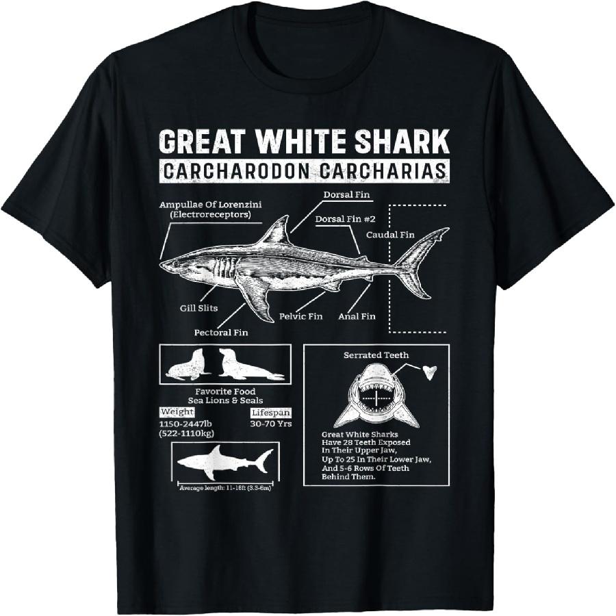 Vintage Great White Shark Anatomy Lover Marine Biologist T-Shirt