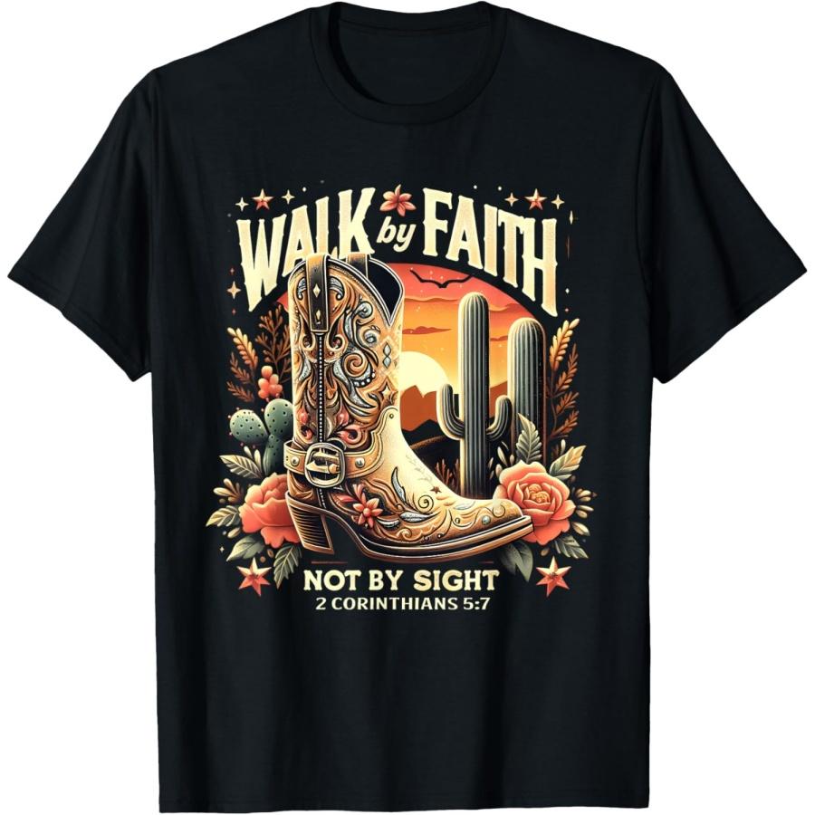 Walk by Faith Not by Sight Christian Western Cowboy Boots T-Shirt