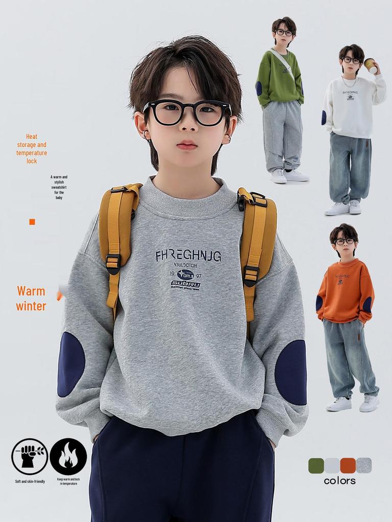 Introducing a cozy and stylish solution for the colder months, this hoodie is designed with boys in mind. Crafted from high-quality cotton, it offers a thick and plush feel, perfect for keeping warmth in during the chilly winter days. Featuring long sleeves and a timeless round neck design, this sweatshirt combines comfort with a trendy look. Ideal for kids, it ensures both functionality and fashion, making it a must-have addition to any winter wardrobe.