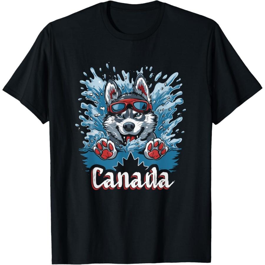 Canada Husky Dog Swimming Art - Canadian Souvenir T-Shirt
