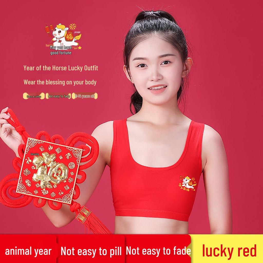 12-Year-Old Girls' Red Padded Zodiac Horse Bra - Anti-Nipple Show