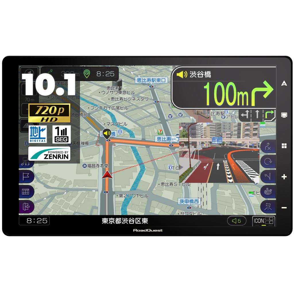 This portable navigation system is equipped with a 10.1-inch wide HD (1280 x 800) LCD screen that allows you to watch full-segment TV.