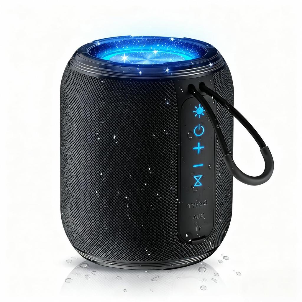 Portable Bluetooth Speaker, Wireless Speaker, Bluetooth 5.3 Compatible, TF Card/AUX Support, High Sound Quality, Waterproof, Shockproof, Enhanced Bass, RGB Lights, 2-Pair Support, Type-C Rechargeable, Music Player, Can be Used in the Bath, Compact and Portable, Compatible with PCs and Smartphones, Perfect for Camping, Fishing, Cycling, and Swimming