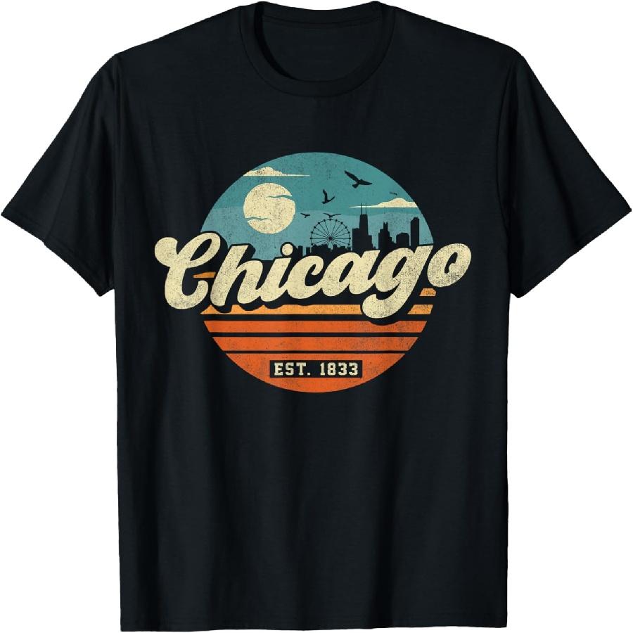 Mens Chicago Illinois Retro Shirt Skyline Night IL Souvenirs T-Shirt