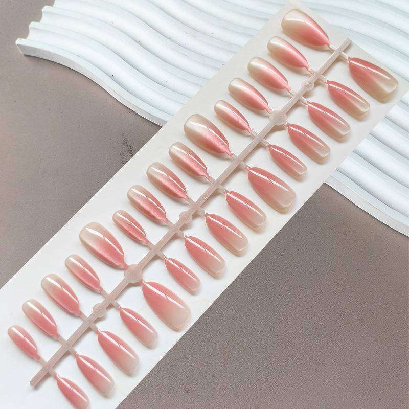 Handmade INS Pink Gradient Medium-Long Wearable Nail Tips for Students