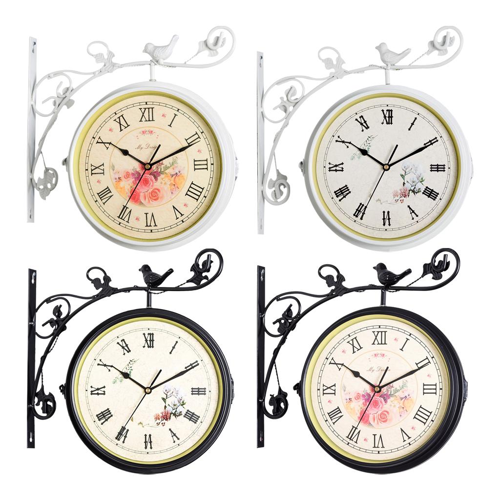 Iron Double Faced Retro Wall Hanging Clock Garden Decor, Pointer and Roman Number Dial