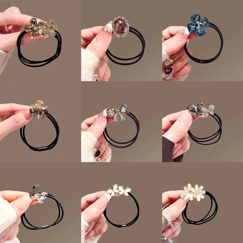 Exquisite Forest Style Butterfly Crystal Hair Ties - Durable Rubber Bands for Women