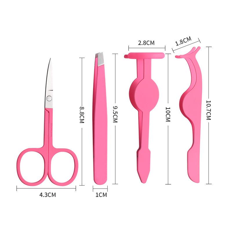 Beauty Tools 4-Piece Set: Stainless Steel Eyelash Curler, Eyebrow Tweezers, Scissors & Leather Case