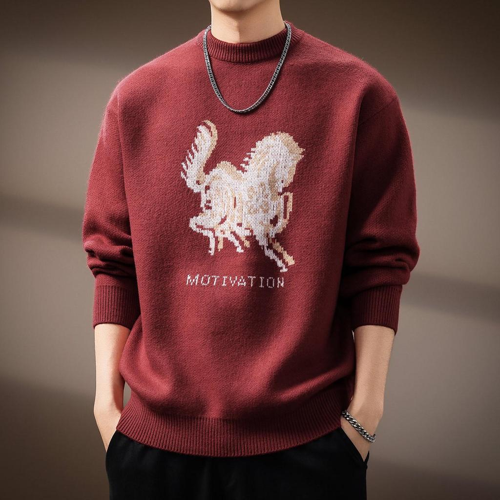 This retro knit sweater features a striking Zodiac Year Horse print and offers a loose fit for maximum comfort. Designed with long sleeves, it is crafted from high-quality polyester, ensuring durability and a soft touch. Perfect for adding a unique and stylish flair to your wardrobe, this sweater effortlessly combines comfort and fashion.