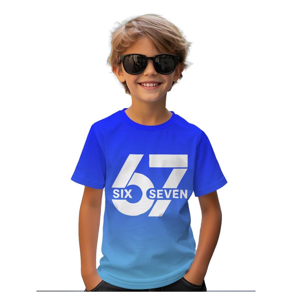 Fashion 67 Number Print Kids T-Shirt Gradient 3D Digital Short Sleeve Boys Tees Top Summer Casual Sports Everyday Girl Clothing