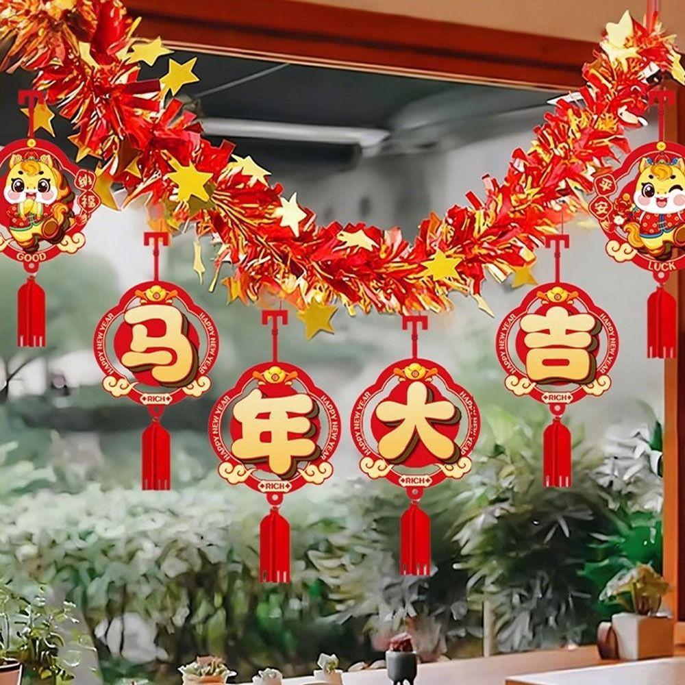 2026 Horse New Year Sticker Anti-Static Red New Year Ribbons Garlands Spring Festival Hanging Decor Festive New Year Supplies