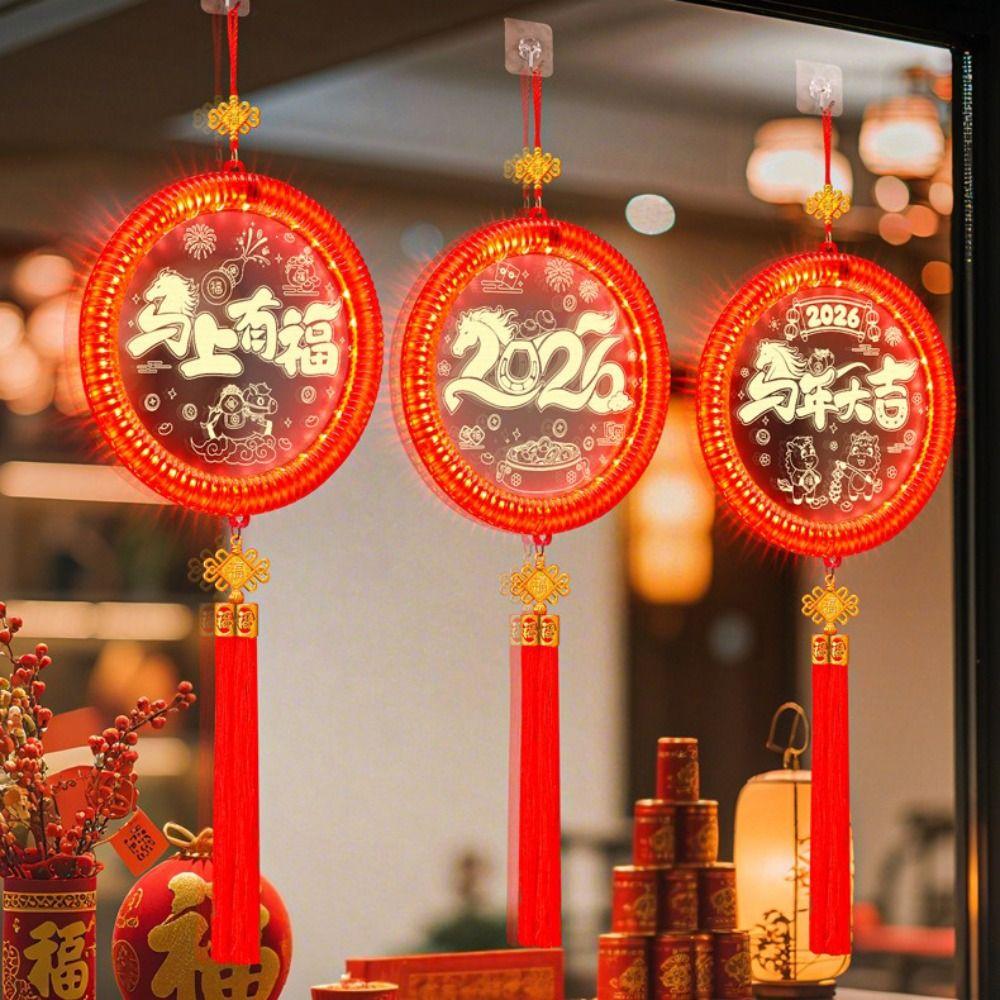 3D Glowing New Year Lantern Pendant Style Easy Hanging Hanging Lights Good Luck Design Year Of The Horse Red Hanging Lanterns