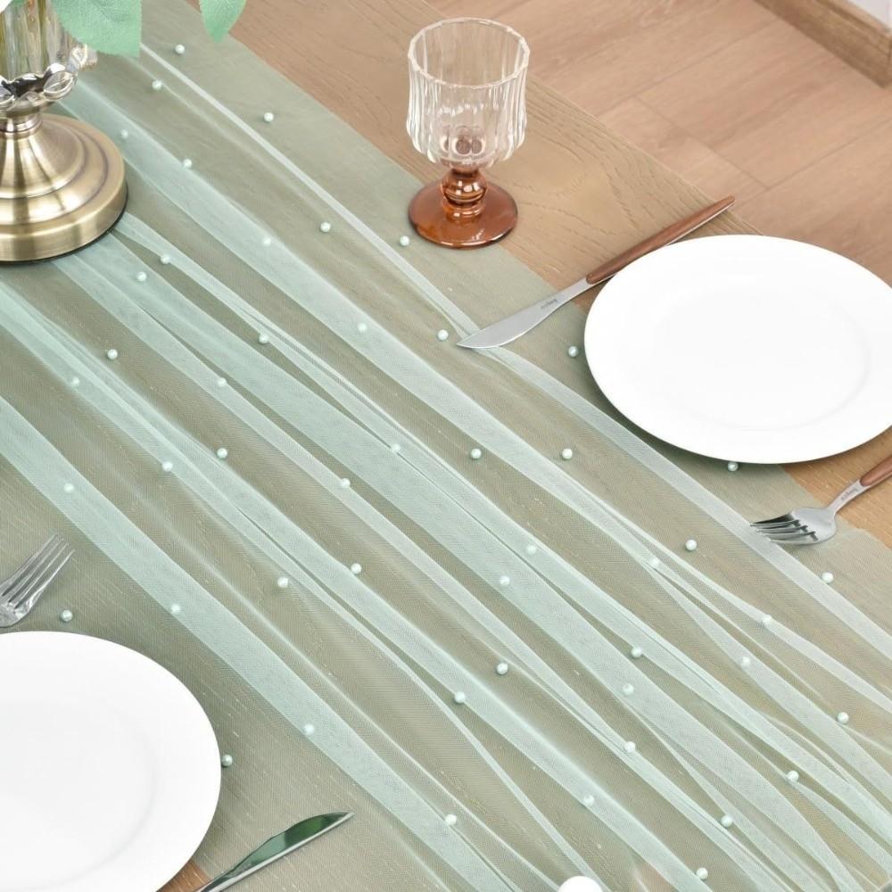 DIY Design 0.75*3M Table Flag Pearl Tulle Semi Transparent Table Runner Gauze Mesh Sheer Drapes Pearl Chiffon Birthday Party