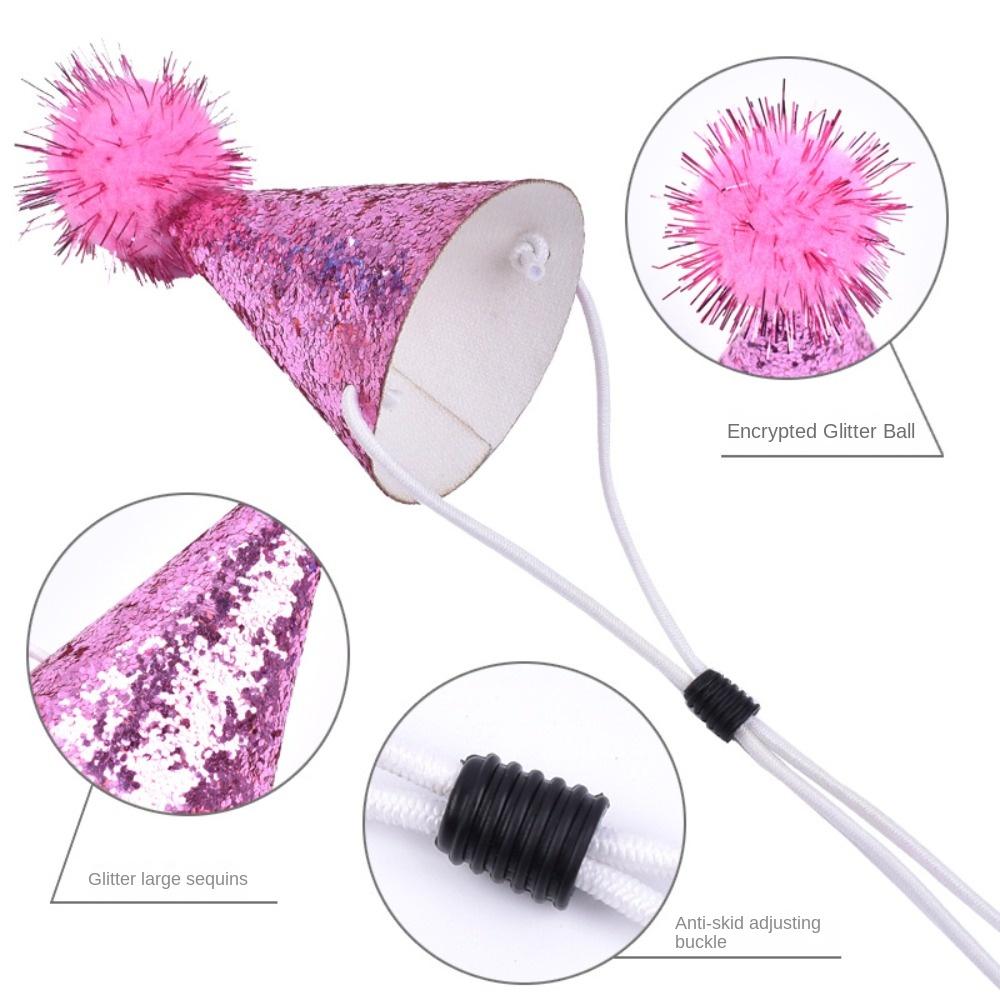 Creative Glitter Dog Birthday Hat Shiny Colorful Hairball Cat Party Cap Cute Adjustable Pet Headband Hats