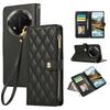 Phone Case For Honor X60 Pro 5G/X9c 5G/Magic7 Lite 5G Multi Card Slots Zipper Rhombus Leather Cover with Wrist Strap