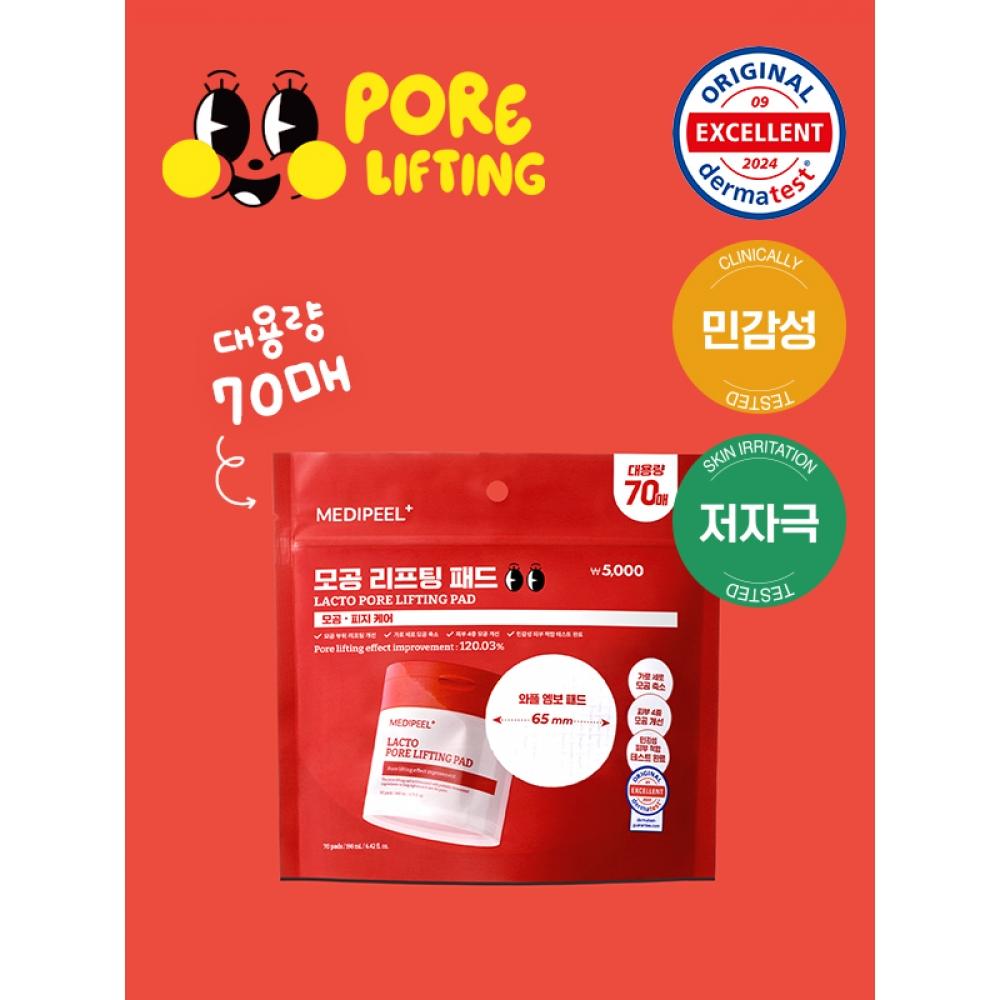 Medifill Lacto Pore Lifting Pad 2.0 Refill (190ml/70pcs) is a daily exfoliation and pore care toner pad that helps to tone the skin after cleansing while providing pore and lifting care simultaneously. This upgraded 2.0 version has been renewed to consider moisture retention, skin texture improvement, and oil-water balance. Each pad contains enough essence for use on the face and neck, and it can be used like a targeted mask on areas of concern.
