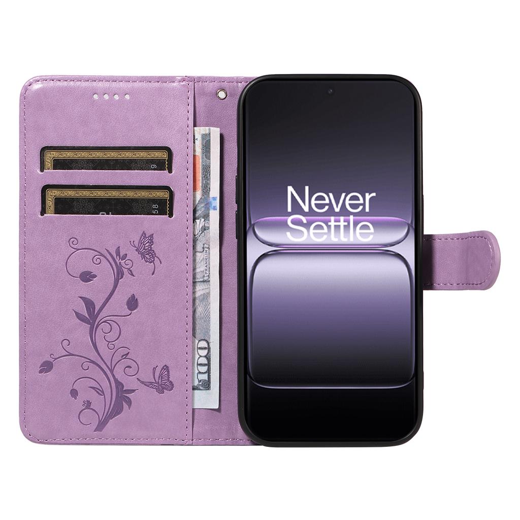 For OnePlus Nord 5 5G/OnePlus Ace 5 Ultra 5G PU Leather Cases Flower Pattern Wallet Stand Phone Cover with Strap - Light Purple