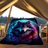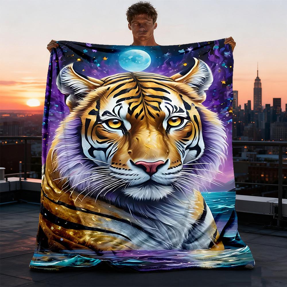 1pc Tiger Moon Night Throw Blanket Polyester Fiber, Lightweight Flannel, Soft & Warm, All Season Use for Outdoor, Camping