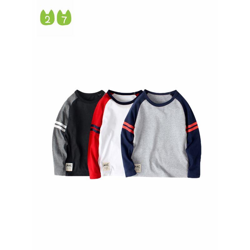 Children's Clothing Spring and Autumn Boys' round Neck Long Sleeves T-shirt Bottoming Shirt Kids Pure Color Tops Children's Two Bars Clothes