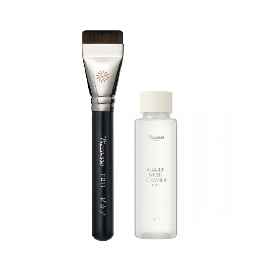 PICCASSO FB11 Spatula Brush + Makeup Brush Cleanser 60ml Set includes a spatula brush and a brush cleanser, designed for makeup application. The spatula brush allows for even application of all foundation formulations and provides a natural adherence for a flawless skin look. This product features a soft, elastic short-hair brush that ensures an excellent user experience. It can be used freely according to the contours of the skin and applies foundation quickly and uniformly over a wide area, suitable for all skin types.