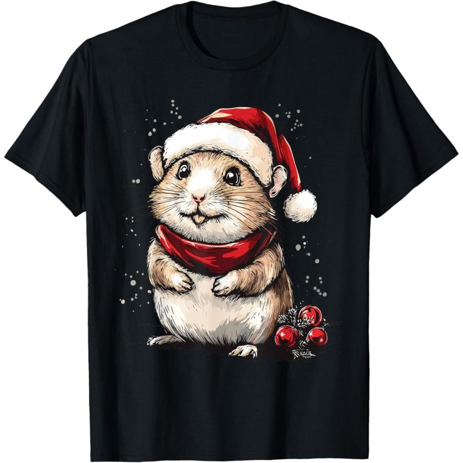 Hamster Santa Hat Funny Hamster Pet Lovers Christmas Pajama T-Shirt