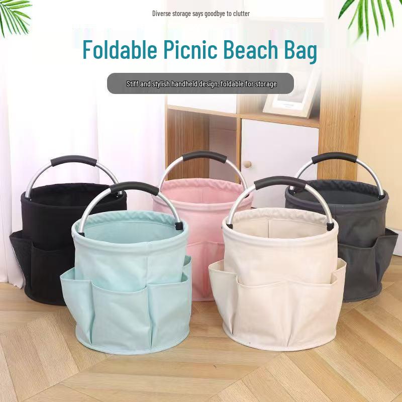 Foldable Outdoor Picnic & Beach Basket with Toiletry Storage