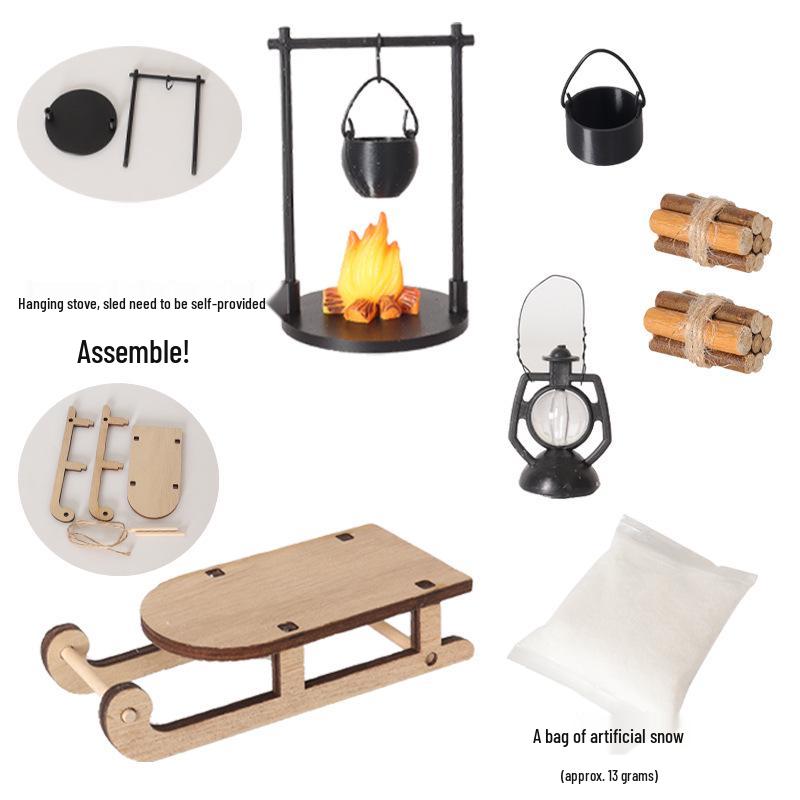 Miniature Christmas Sleigh Stove Model: Outdoor Hanging & Halloween Scene Props for OB11