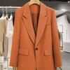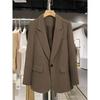 Brown Single-Breasted Blazer Women's Slim Fit Formal Office Classic Solid Color Work Outerwear
