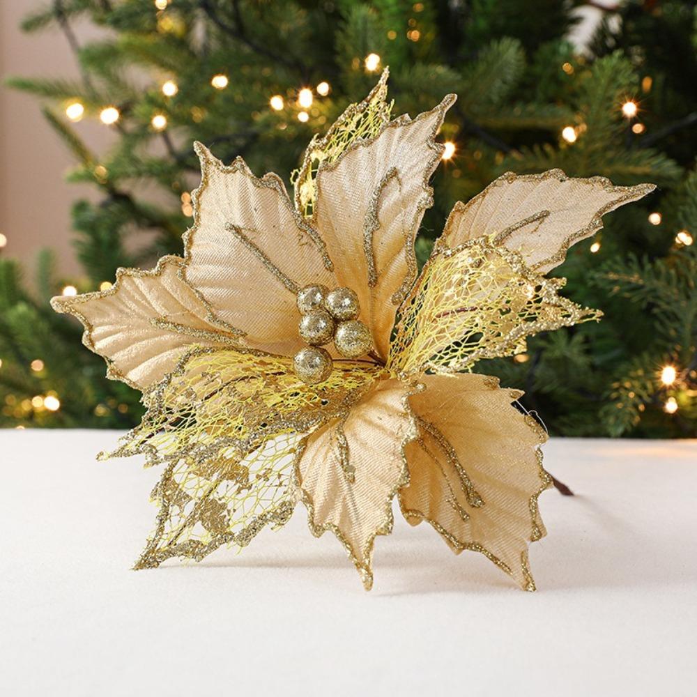 New 24cm Poinsettia Glitter Flower DIY Large Christmas Flowers Merry Christmas Wedding Decor Xmas Tree Decorations