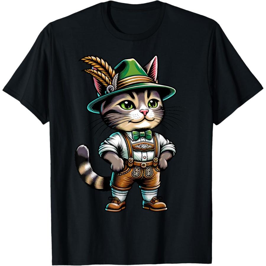 Oktoberfest Cat Funny German Bavarian Lederhosen Cat Lover T-Shirt