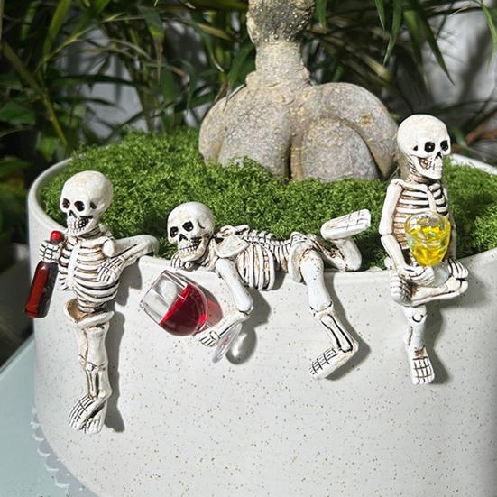 Eğlenceli ve Atmosferik Tasarım: İskeletin rahat pozları - içki içerken veya uzanırken - her mekana tuhaf ama rahat bir hava katar.. Bu eşsiz şekil, sıradan saksıları veya masaları kişiselleştirilmiş küçük sahnelere dönüştürerek Cadılar Bayramı veya günlük dekorasyon için göz alıcı bir ek haline getirir.