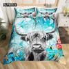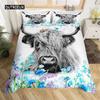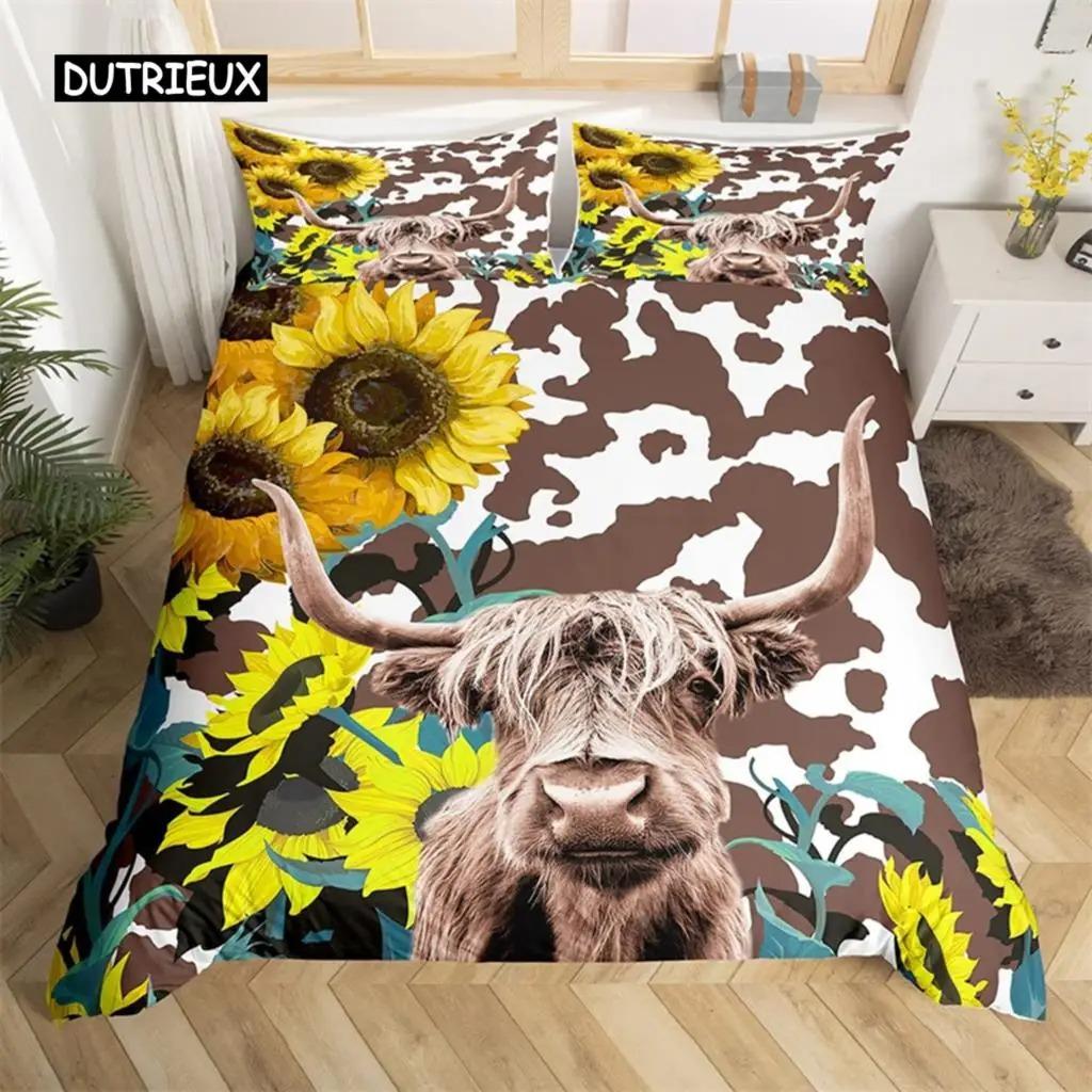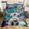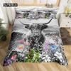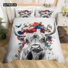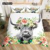 Highland İnek Yatak Takımı Polyester Boğa Sığır Çiçekleri Yorgan Kılıfı Batı Vahşi Hayvan Yorgan Kılıfı Çiftlik Evi İnek Yatak Örtüsü Kılıfı