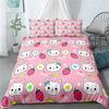 Unicorn Cat King Queen Duvet Cover Pink Kawaii Cartoon Kitty Bedding Set Magical Animal 2-3pcs Soft Quilt Cover for Kids Girls