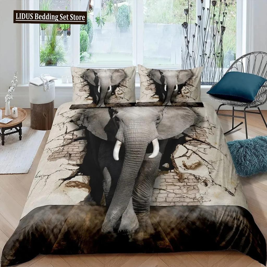 3D Elephant Duvet Cover Set Queen Size African Safari Animal Comforter Set Wildlife Bedding Set Retro Wall Decor Bedspread Cover