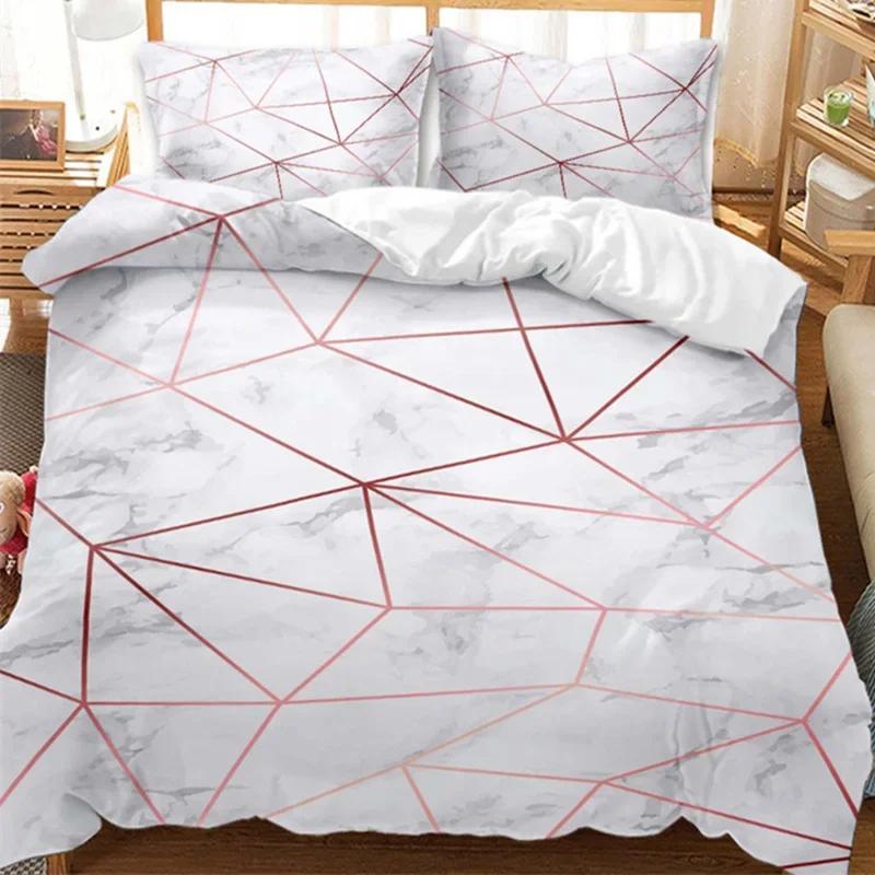 Geometric Marble Duvet Cover Stripe Triangle Bedding Set Luxury Comforter Cover With Pillowcases Twin Full For Adults Kids Decor