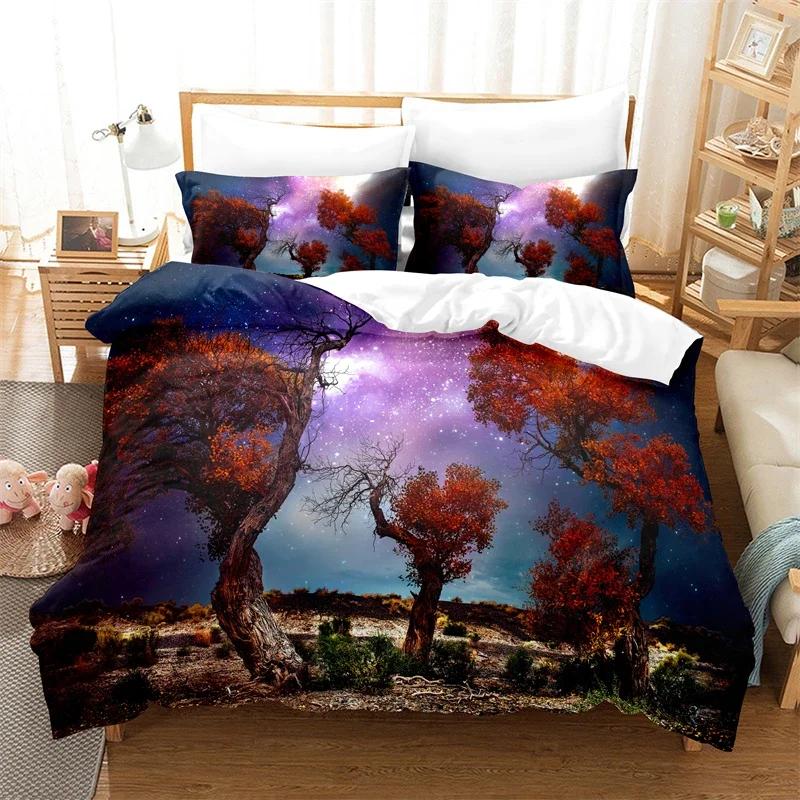 Tree Duvet Cover Set Twin Full King Mysterious Woods Bedding Set Polyester Fantasy Starry Sky Comforter Cover Forest Quilt Cover