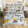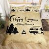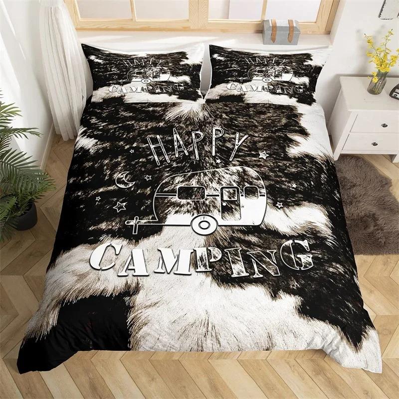 Western Cowhide Duvet Cover King Size Happy Camping Bedding Set Polyester Farmhouse Style Comforter Cover For Travel Rv Bunk Bed