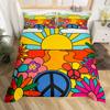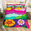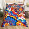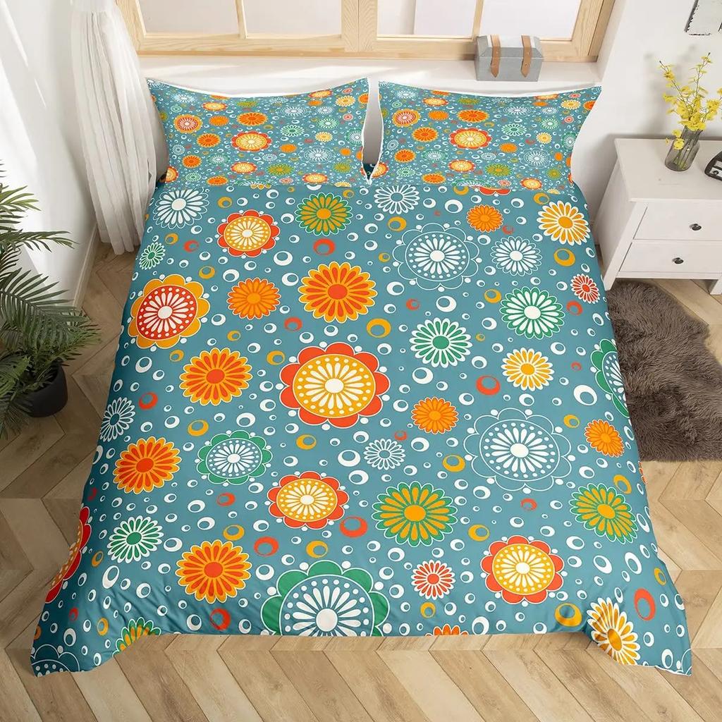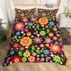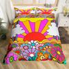 Hippie Flower Duvet Cover Set Boho Mandala Bedding Set Microfiber Groovy Flowers Comforter Cover King for Girls Women Room Decor