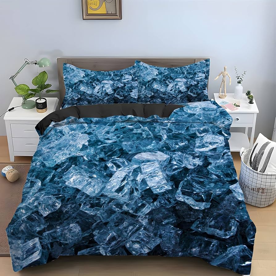 Ice Cube Duvet Cover Set 3D Ice Pattern Twin Queen Bedding Set Microfiber Summer-Cool Comforter Cover for All People 2/3 Pieces