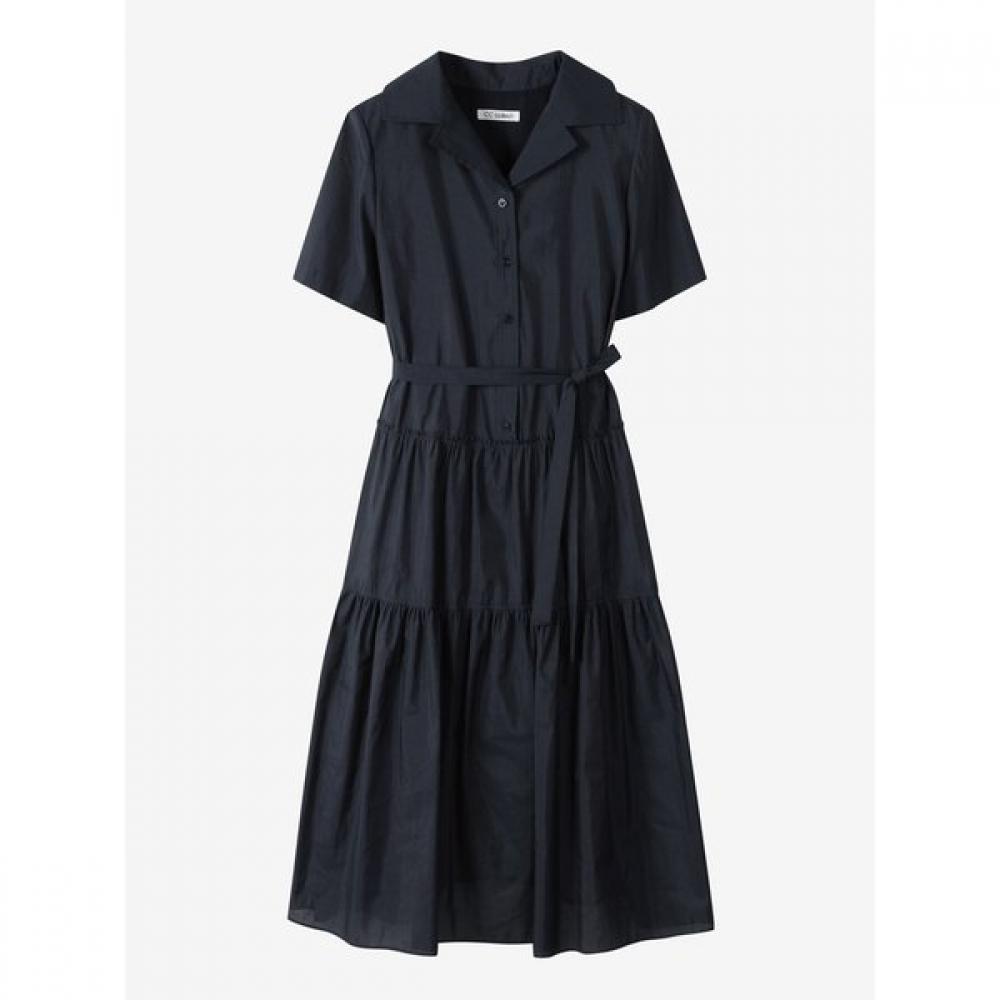 The CC Collect Open Collar Shirring Flare Dress C252MSE133 is a flare long dress that features abundant shirring details. It has a loose and voluminous fit throughout, providing comfortable wear, and allows for styling with the included waist belt. The internal banding detail at the back waist offers a comfortable wearing experience. The open collar shirt and two-tiered design work harmoniously, and a lining is included to minimize transparency. The thin and cool fabric makes it suitable for wearing alone throughout the summer.