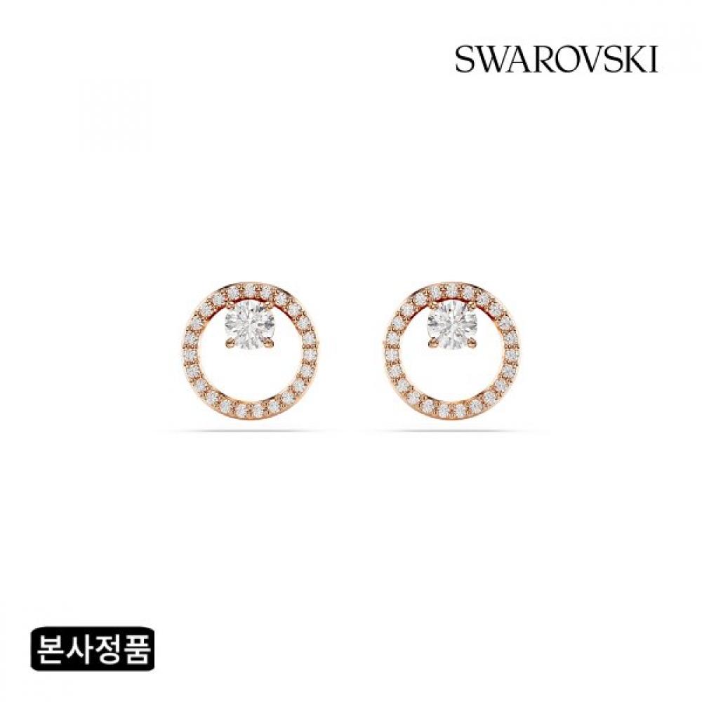 The Swarovski Rose Gold Stud Earrings (Model No: 5692263) feature an elegant circle design, and each earring is plated in rose gold tone. A clear Swarovski zirconia is positioned at the center, making them suitable for both casual styles and special occasions. They are inspired by the Constella collection.