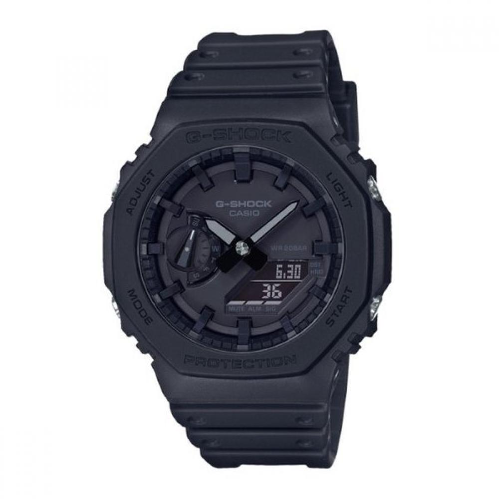 The G-SHOCK GA-2100-1A1DR is a slim analog-digital combination watch that inherits the octagonal shape of the original DW-5000C model. It boasts excellent shock resistance and 20 ATM water resistance, further lightweight due to the simple design and use of high-strength carbon fiber-reinforced fine resin material. Practicality is enhanced with the hands shift function and double LED light.